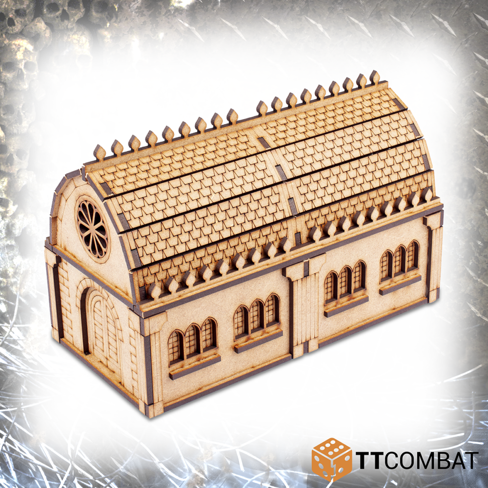 The Convent Ambulatory is a great piece of scenery for your table. Not only does it block line of sight for your troops to hide behind, but it also has roof access for gunning down your foes from an elevated position. The set features a removable roof, which means it’s easy to assemble. For the interior, some seats are provided and for the exterior, fences. Perfect for cover.