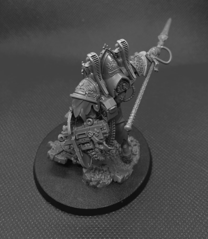 Interessant für Umbauten wäre, ob jener Arm mit der Nahkampfwaffe auch ohne viel Schneidereien mit einem weiteren Fernkampfwaffenarm (eventuell aus dem rahmen der „normalen“ Kampfanzüge“?) dieser Anzüge ersetzt werden kann? Im Gussrahmen sieht es bisher so aus, als wäre der schwere Bolter explizit mit dem rechten Arm verknüpft und nicht separat, sodass es egal wäre, auf welcher Seite man ihn anbringt.