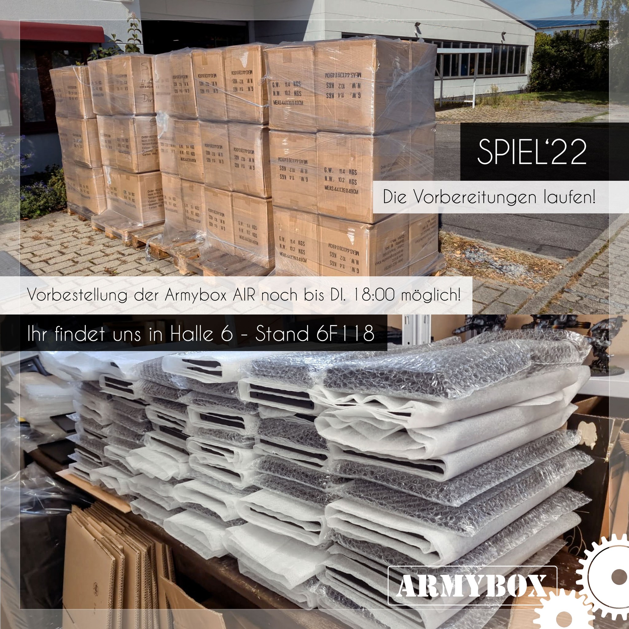 The last items have arrived in time at our warehouse and we are busy packing for you!This means you can pick-up your pre-ordered ARMYBOX AIR already on Thursday at our booth! You will find us in hall 6, booth 6F118!Take the opportunity until Tuesday at 18:00 clock to secure the ARMYBOX AIR in the pre-order offer!https://www.army-box.de/shop/neu-armybox-air-spiel-22/