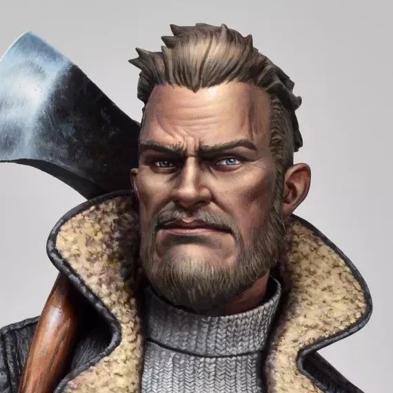 Auch die Axt ist stark. Die metallene Reflexion des Lichts auf der rechten Seite des Kopfes ist super. Der Puli ist auch sehr schön. Ich übersah erst, dass der nicht modelliert ist, sondern nur gemalt. Insgesamt echt viele schöne Details und Wirkungen…