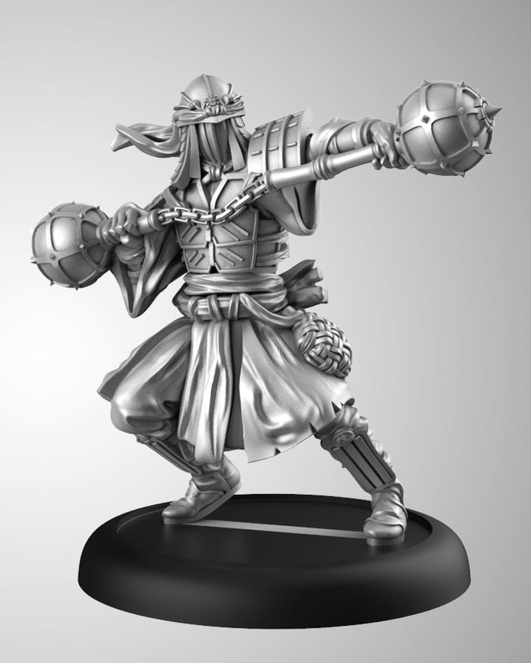 Jinichi is a valuable member of The North Star who adds a slightly different approach to what they do. He has perfected fighting with a strange weapon that is a unique combination of blade and chain, and the whirring sound it makes as he spins it is often the last thing his enemies hear before they die. Because of its reach, it can quickly get between a samurai and his sword, thus breaching his defence leaving him open to attack. The blades are designed to cut and tear the flesh from his enemies bones, while the chain can immobilise the arms or legs of the unwary. Jinichi is no stranger to the poison stores of his night-clad clan, and he incorporates this into his fighting style by anointing his blades with deadly toxins. Jinichi is a lethal killing machine with a penchant for tactics and terror.