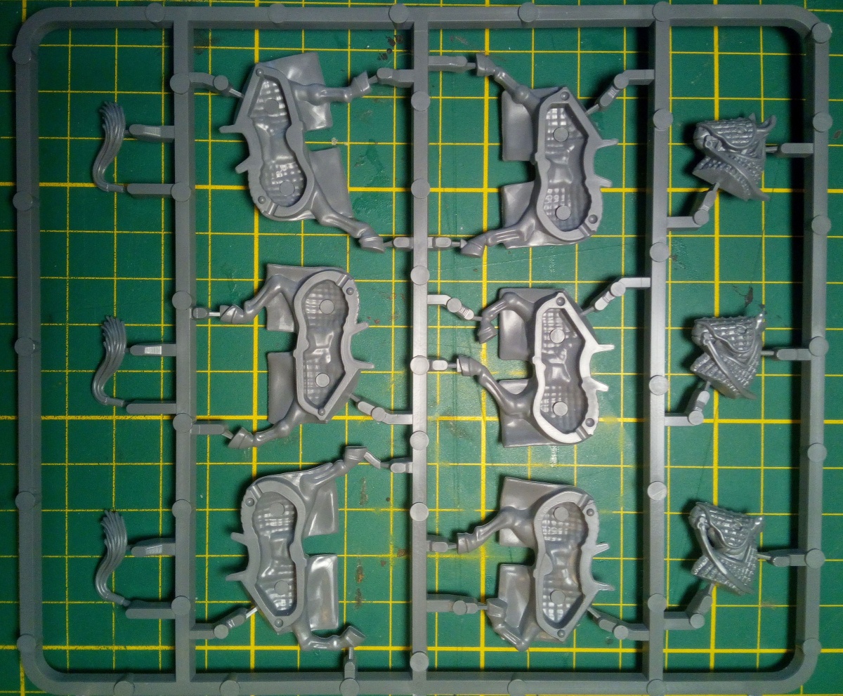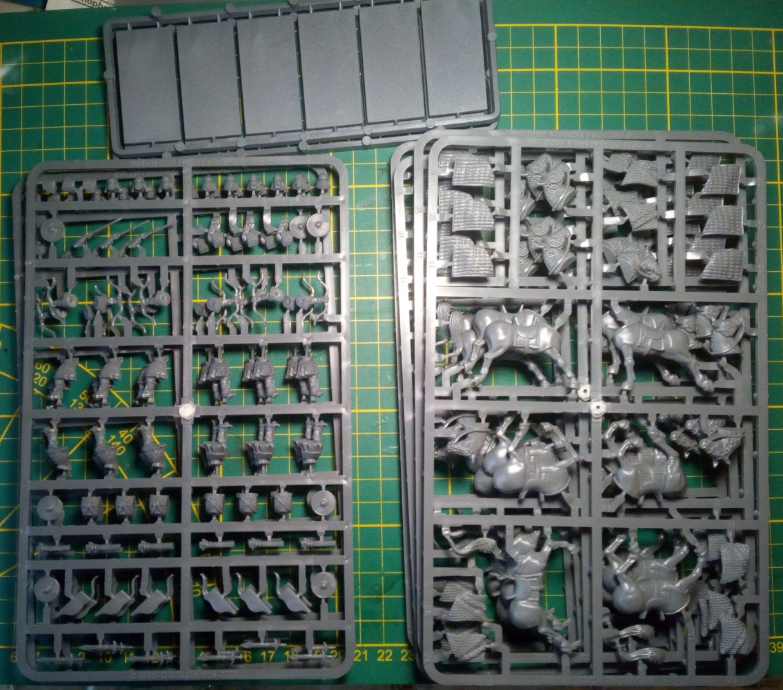 Wie auch schon bei den Kousores kann man aus einem Rahmen sechs Reiter bauen. Diese tragen alle einen Bogen und haben entweder eine Hand, die noch einen Pfeil hält, oder eine, die gerade einen Pfeil losgelassen hat. Von beiden rechten Arm Optionen sind jeweils drei Exemplare vorhanden. Die Arme, die noch einen Pfeil halten, bestehen aus zwei Teilen. Einmal dem Unterarm und dem Oberarm, welcher komplett gerüstet ist und neben den Köpfen im Gussrahmen zu finden ist. Allen sechs Schützen kann man zusätzlich noch Rundschilder, Pfeilköcher, Ersatzbögen und Schwerte in Scheiden geben. Auch hat man bei den Köpfen wieder die Auswahl zwischen drei Köpfen, die komplett von Kettenrüstung verschleiert sind und sechs Köpfen deren Gesichter unbedeckt sind.