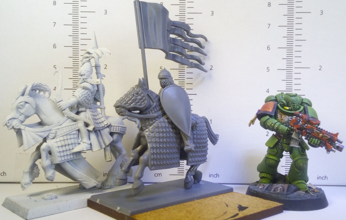 Von links nach rechts: Games Workshop Ellyrianische Grenzreiter, Fireforge Games Byzantiner, Games Workshop Primaris Space Marine