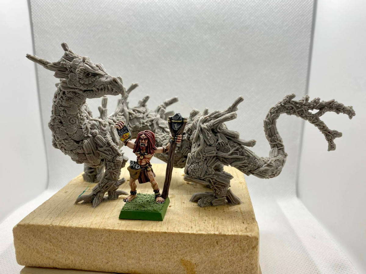 Finally finished! My next figure for my HarrowHyrst range is the Forest Wyrm, pictured with a human who is around 32mm tall.