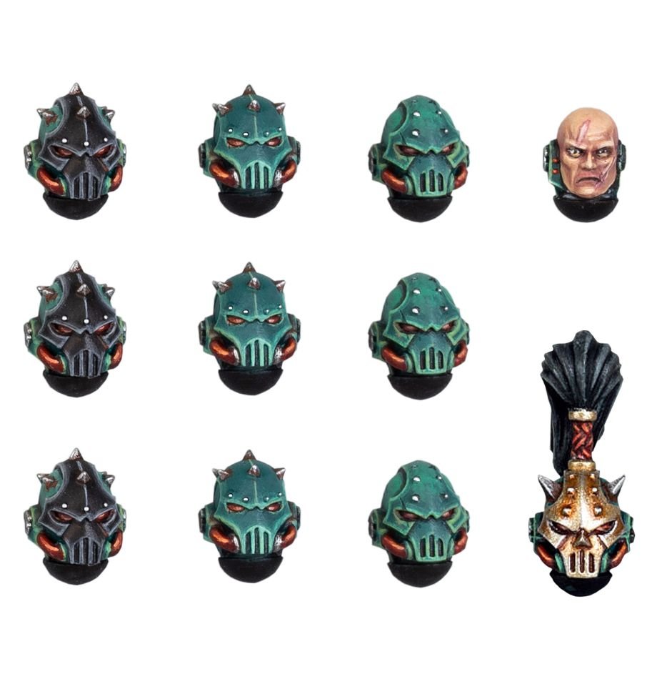 This upgrade kit can be used to customise Legionaries from the MKVI Tactical Squad set with new heads, trading out the standard ‚beaked‘ helmets for the traditional Cthonic war-masks common to the Sons of Horus. The kit includes nine helmeted heads in three different designs, each featuring decorative spikes and a muzzled respirator, as well as two heads designed for Sergeants – one bare head, and one helmet with an impressive topknot. Spread these components around your army to add some XVI Legion flavour, or outfit entire squads for an elite, unified look.