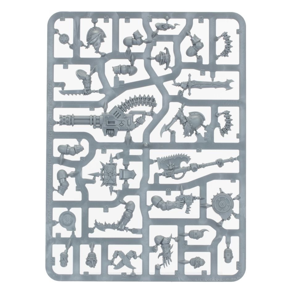Dieses Set besteht aus 172 Kunststoffteilen und wird mit 10x Citadel-Rundbases (32 mm) geliefert. Ebenfalls enthalten ist ein Abziehbilderbogen der Chaos Space Marines mit 364 Chaos-Runen und Legionsabzeichen. Diese Miniaturen sind unbemalt und müssen zusammengebaut werden.