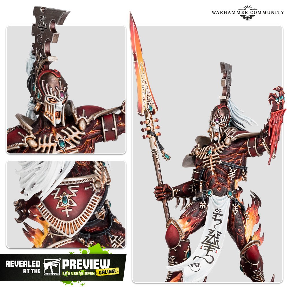 Aber auf der anderen Seite holt mich da der Hype Train noch nicht wirklich ab. Der Avatar ist insgesamt cool, aber die Flammen und die Blutige Hand sehen komisch und künstlich aus. Das hat Games Workshop bei anderen großen Modellen meiner Meinung nach schon mal besser hingekriegt (z.B. bei den Flammen auf dem Base des Blutdämons oder die Geisterflammen auf Belakors Schwert). Mangan Ra sieht auch irgendwie seltsam aus, in meinen Augen etwas zu schwungvoll. Da gefällt mir das bullige, alte Modell besser. Anderseits ist der Phoenix Lord trotzdem kein kompletter fail. Da haben mir unterm Strich die Speere des Khaine am besten gefallen, da sie eine schöne Neuauflage der alten Figuren darstellen. 🙂
