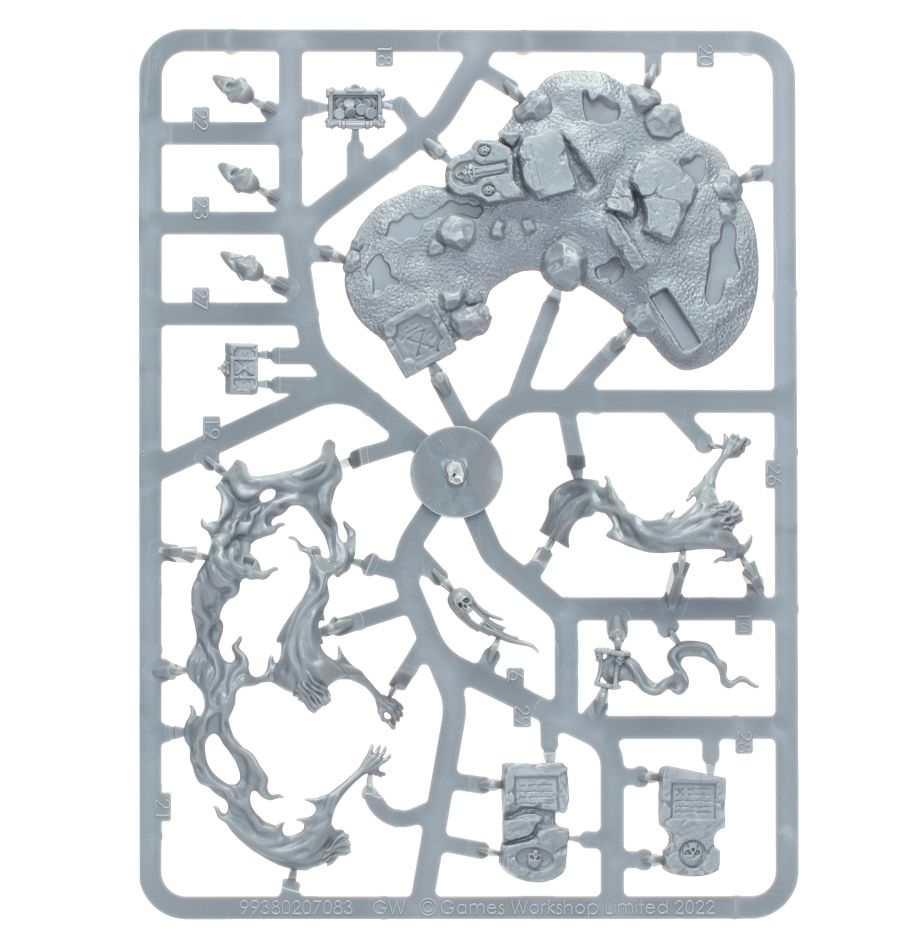 – A showcase of morbid Nighthaunt miniatures assembled in the colours of their Processions, alongside guides on how to paint them yourselfAlso included is a sheet of 28 tokens and a range ruler, used for tracking the effects of the Wave of Terror ability.