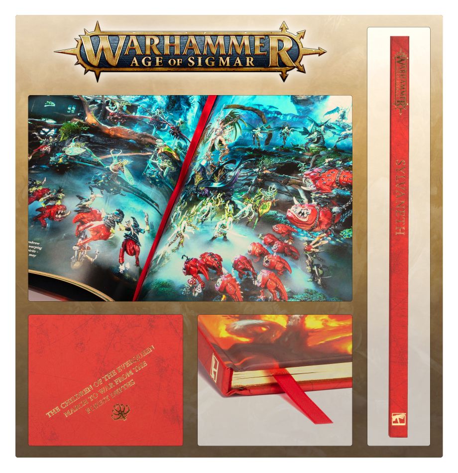 – A showcase of stunning Sylvaneth miniatures in all the natural colours of their Glades, alongside guides on painting them yourselfThis limited edition of Battletome: Sylvaneth is presented with a soft-touch cover, a red ribbon marker, gold gilt page edges, and gold foil blocking. It is limited to 700 individually-numbered copies, each one a bounty worthy of Alarielle herself.