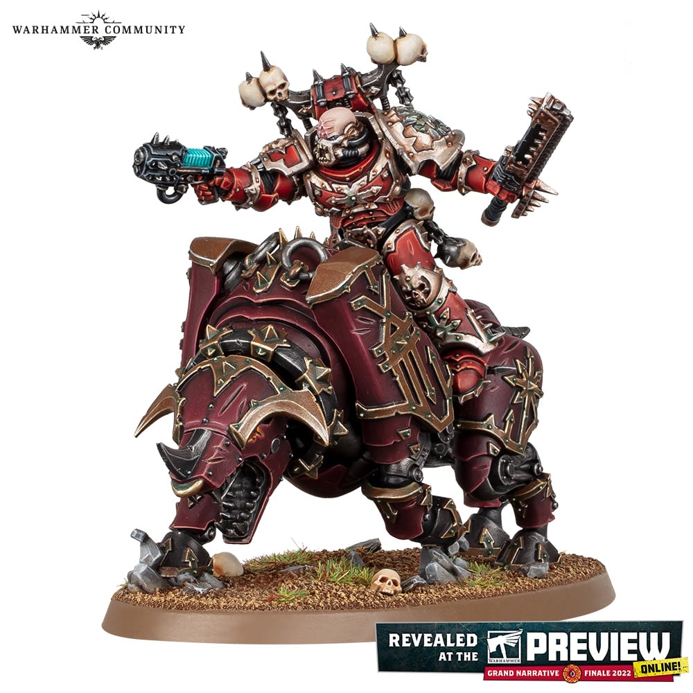 Lead your ground-shaking charge with the savage Lord on Juggernaut. Anything lucky enough to survive a sweep of his exalted chainblade will find itself impaled on the Juggernaut’s bladed horn.