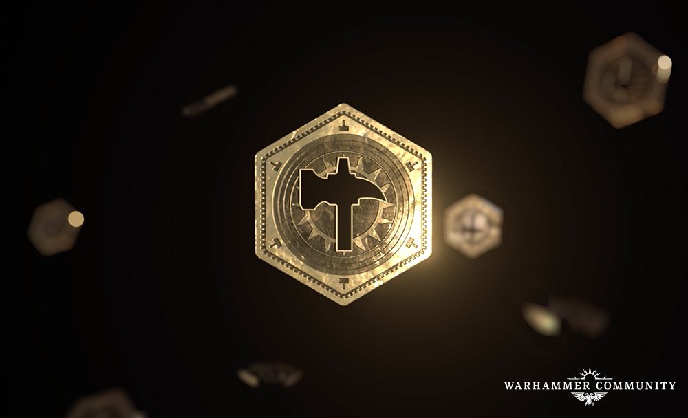 We’ve even managed to procure a sneaky peek at some of the early miniature renders that the studio is working on right now.* These are some of the insignia, emblems, and symbols that will come with your models to demonstrate their rather macabre dedication to the God-King.