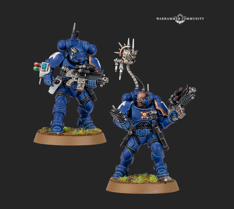 These Space Marines are based on the Incursor/Infiltrator kit, with an additional sprue like those of the Chaos Space Marine Legionaries from Kill Team: Nachmund and the T’au Pathfinders from Kill Team: Chalnath. These extra bits let you build a range of unique special operatives, such as the Saboteur or the Voxbreaker.