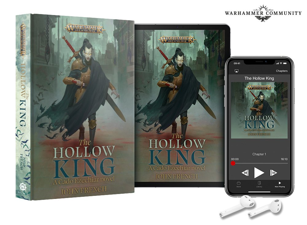 On the page, John French’s novel The Hollow King follows the star of Beasts and Tower of Empty Mirrors on his path of revenge against the forces of Chaos. Can he navigate through a web of deceit while remaining bound to his code and obsession for vengeance? Find out in hardback, ebook, and audiobook formats.