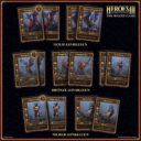 Jede Fraktion im Grundspiel verfügt über zwei Figuren, einen Helden der Macht und einen Helden der Magie. Wie im Computerspiel sind die Figuren nicht dazu gedacht, die Helden wortwörtlich darzustellen. Vielmehr ging es uns darum, die allgemeine Atmosphäre einer bestimmten Fraktion widerzugeben. Das ermöglicht eine größere Vielfalt an Helden, aus denen man während des Spiels wählen kann. Es erlaubt auch mehr Freiheit bei der Gestaltung der verschiedenen Modelle und ist ein klarer Verweis auf die Mechanismen des Originalspiels.