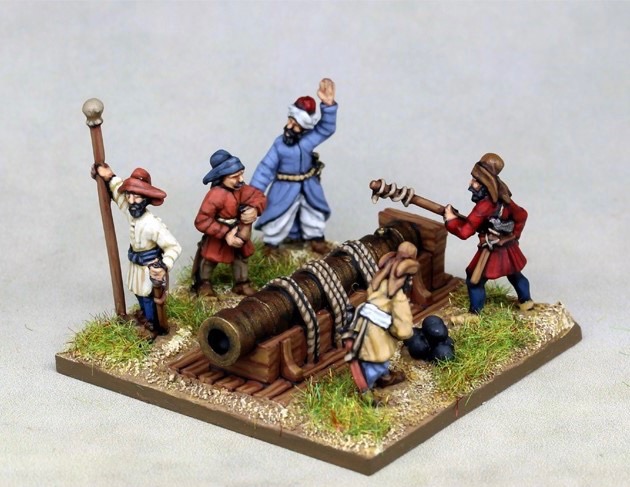 Khurasan Miniatures is pleased to release two sets for our popular 15mm Ottoman range, a Sipahis set 2 and a bombard and crew:The Sipahis Set 2 are in late 14th to 15th century gear, and were made to represent armies of that earlier period, but can also be used in later armies to represent Timariots in Anatolia, or European Timariots with old fashioned equipment — which many of them would have continued to use, even in the Europe-raised squadrons well into the 17th century. The bombard is more appropriate as the heavy cannon in earlier armies.
