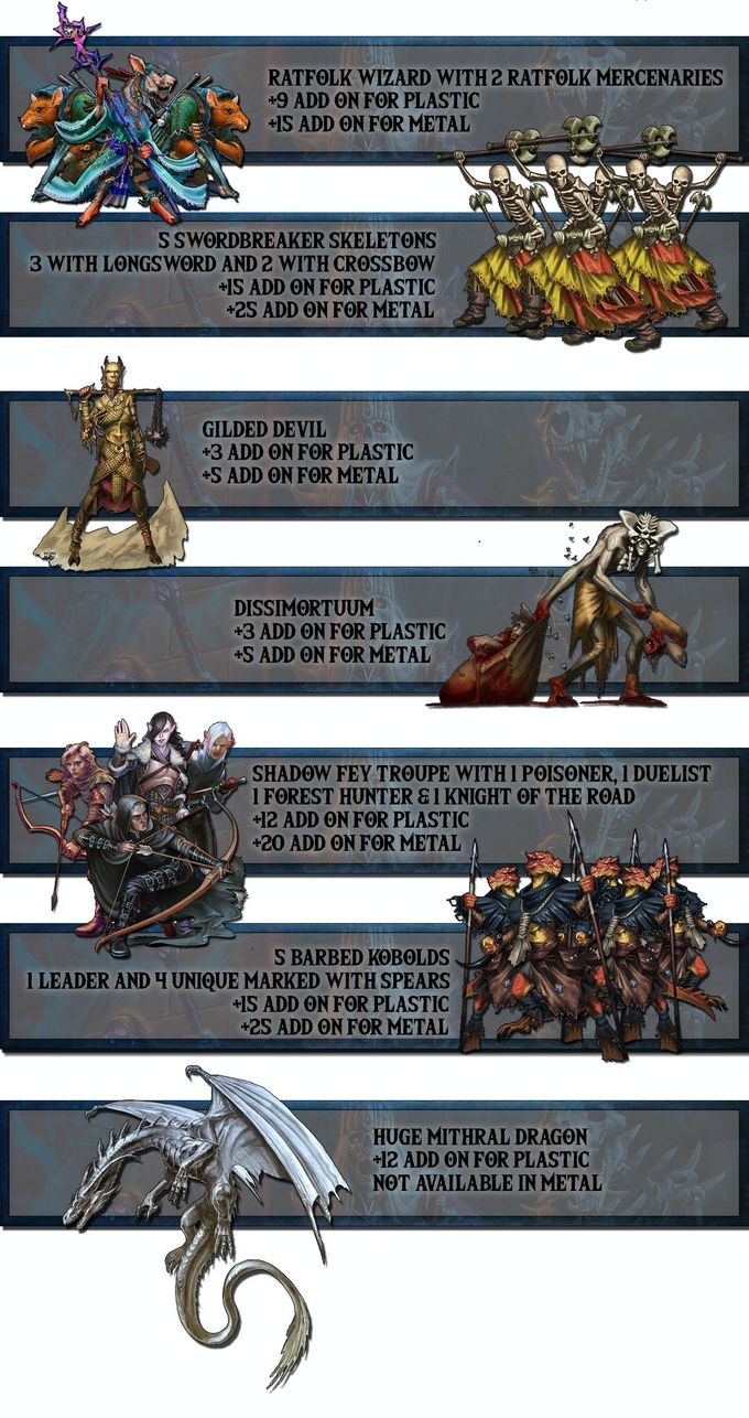 Every other STRETCH GOAL will be unlocking the re-tooling for plastic of a previously available metal miniature from this line. As these models are converted to plastic, some of them will no longer be available in metal. If you are pledging for any of the metal miniatures options please understand that some of these STRETCH GOALS, as noted, will not be offered in metal and you will instead receive the plastic versions of those models.