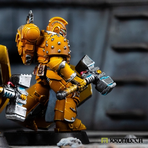 Made out of extremly durable triple layer of ceramite and decorated with rich ornaments – Omega Legion Thunder Shields have to withstand everything that could pierce through the power armour.