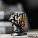 Made out of extremly durable triple layer of ceramite and decorated with Legion symbols – Seraphim Knights Thunder Shields have to withstand everything that could pierce through the power armour.