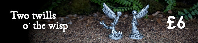 Left at the Bottom of the Garden Chapter Three is a project to fund the production of seven high quality, lead-free metal miniatures, each depicting a cloth creature. Following on from my previous Kickstarters, our intrepid lost toys have met a new group of toys deep in the forest: a pair of cloth wolves, the boisterous peerie woos and the mysterious twills o‘ the wisp.