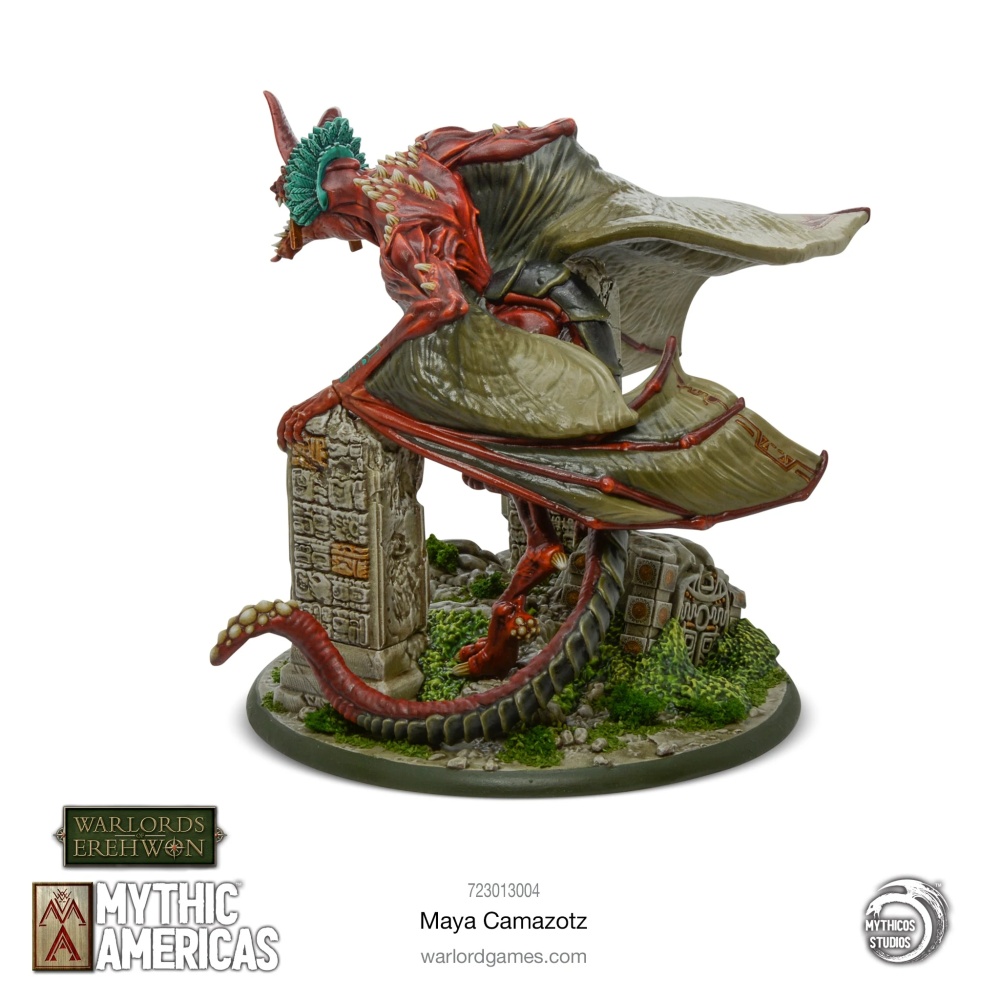 The utterly terrifying Camazotz, or Death Bat, is a divine creature of nightmares. It rises from the underworld at the behest of Mayan priests to aid them in war. Silent as the night air, it strikes without warning and those who witness its baleful presence cower in terror as it shreds its victims to tatters.