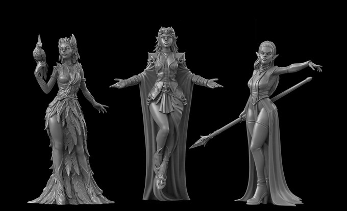 Welcome everyone to the Elven Trinity Kickstarter campaign. This campaign will focus on three brand new sculpts of differently themed female elf characters. We have chosen to go with feral, light and dark to show different aspects within elven society. These themes should give you nice opportunities to play around with different colour schemes.
