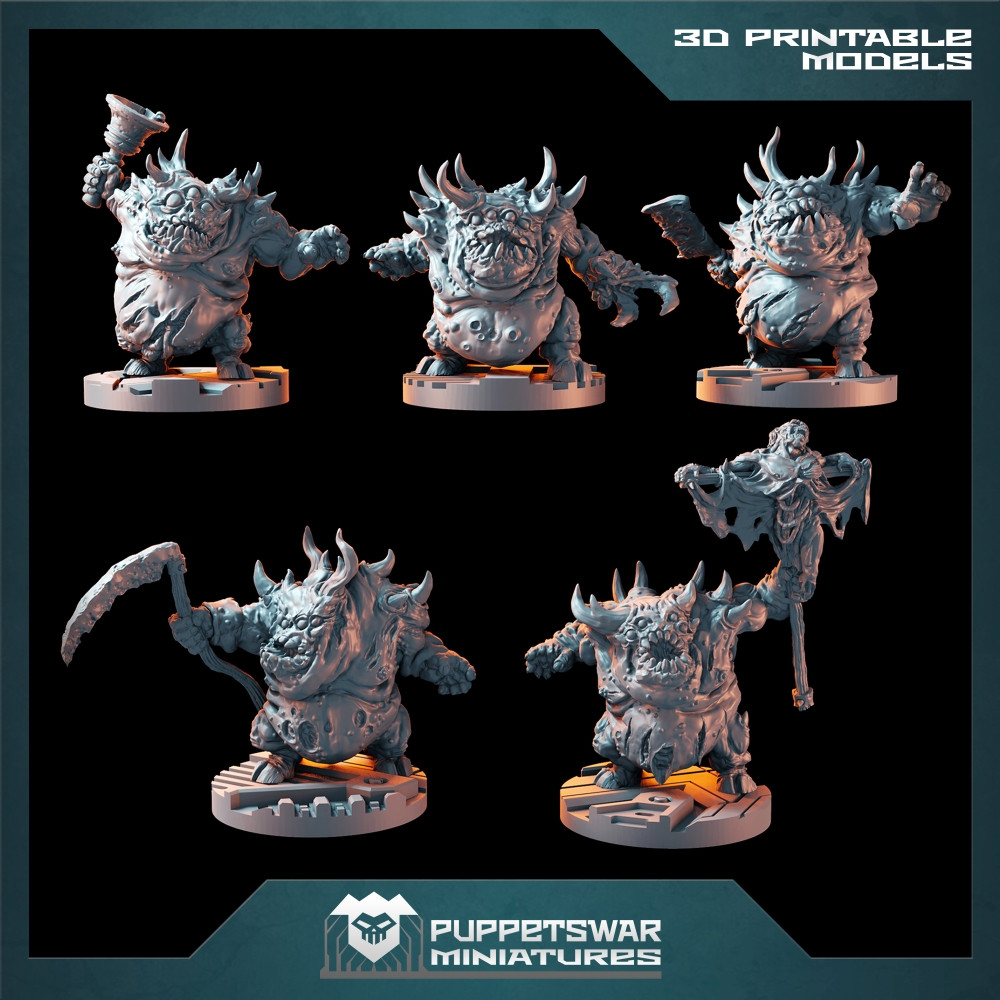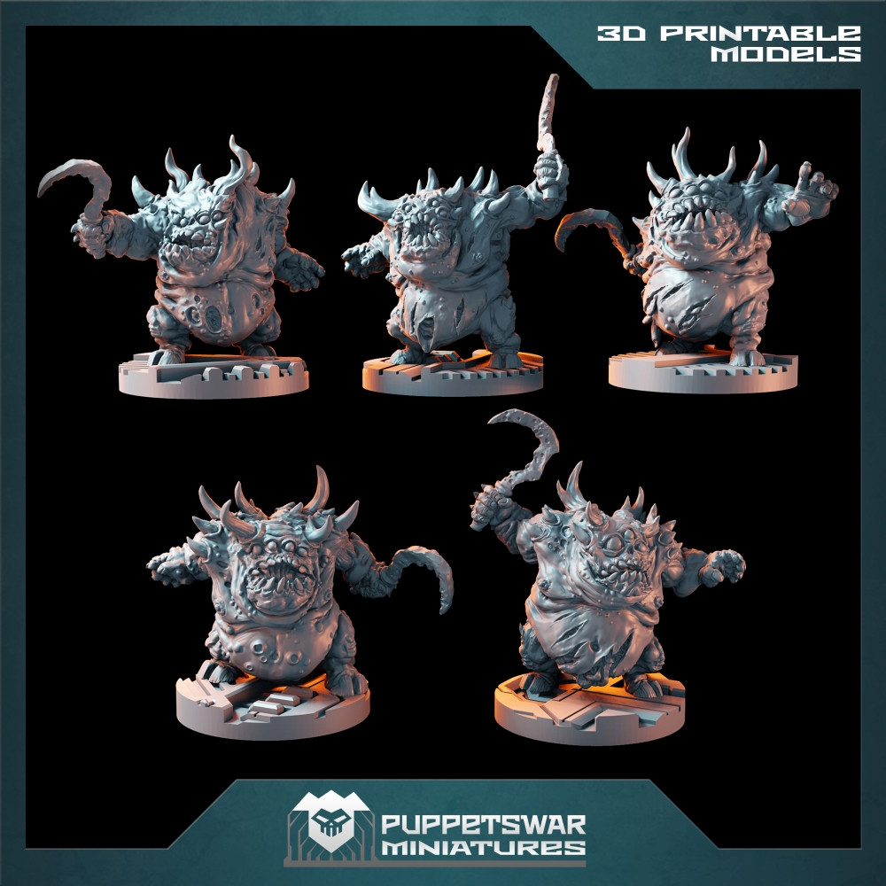 One .zip file with 3D printable digital models of the Blight Runners in both unsupported and pre-supported format.