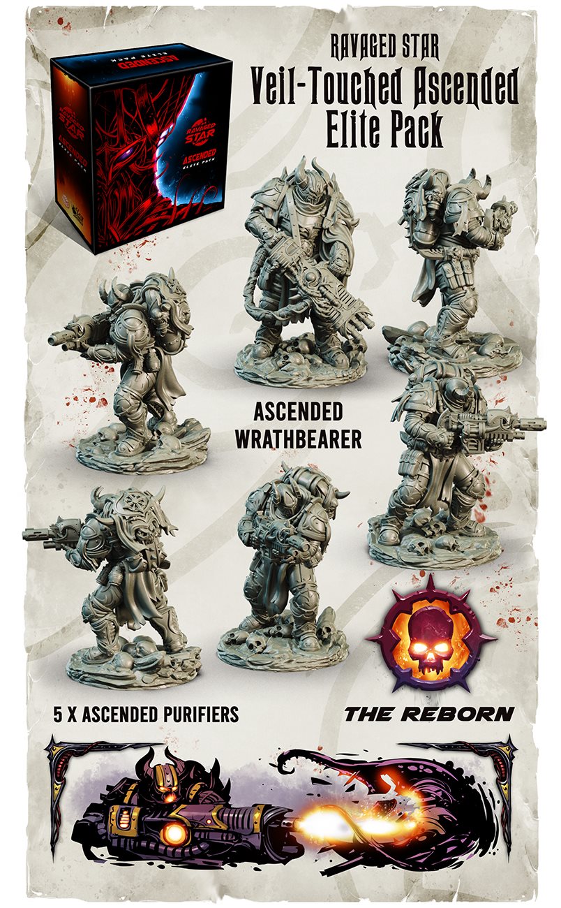 The Veil-Touched Ascended Elite Pack contains 12 highly detailed PVC miniatures including the dreaded Wrathbearer. Includes any associated unlocks.