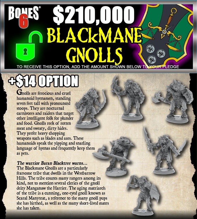 Core Set Stretch Goals add more Bones miniatures to the main Core Set! The Red Lock on the graphic means the goal hasn’t been met yet, while a Green Unlock means we’ve successfully added the miniatures pictured to the Core Set!
