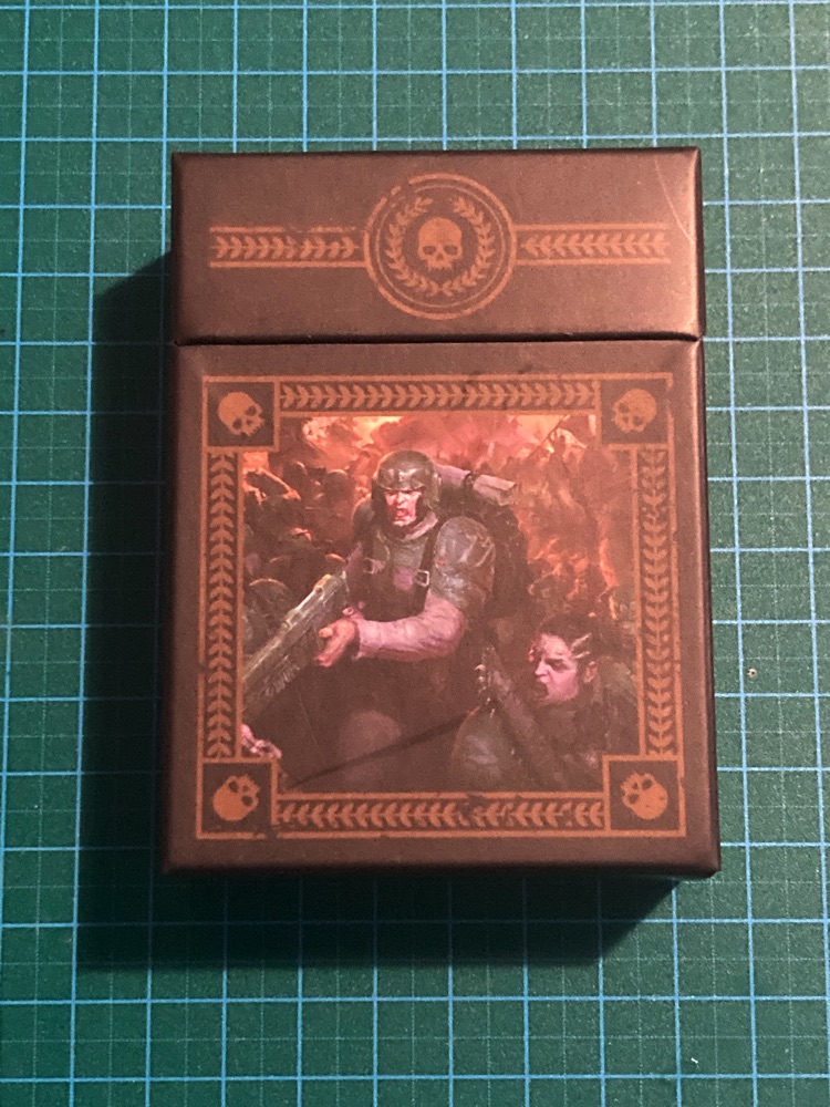 Der Codex Astra Militarum für die aktuelle 9. Edition, mit zwei exklusiven Drucken auf dem Cover und der Rückseite, bringt es auf 152 Seiten. Die Datakarten für das Astra Militarum sind 63 Karten, die Gefechtsoptionen, Befehle und Psikräfte im handlichen Format abbilden.