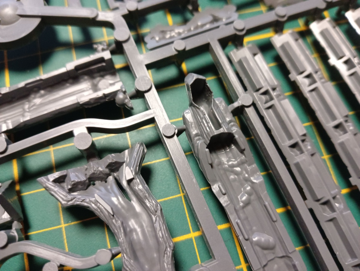 Der erste Gussrahmen, der unter anderem Tor, Treppe und Statue enthält, ist einfach enthalten. Ebenfalls darin enthalten sind Wandelemente, zwei Dornenranken und ein Baum.