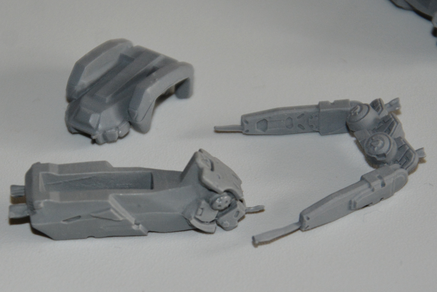Die Bots bestehen aus Siocast, einem sogenannten „Thermoplastic Resin“. Von den Verarbeitungseigenschaften her erinnert das Material an eine Mischung aus Bones und weichem Resin. Es lässt sich nicht feilen, sondern muss entgratet werden, indem man die Grate mit einem möglichst scharfen Messer wegschneidet. Obwohl Siocast weicher ist als branchenübliches PVC/Restic, hinterlassen Feilen und schabende Bewegungen auch hier unschöne „Riefen“ auf dem Modell.