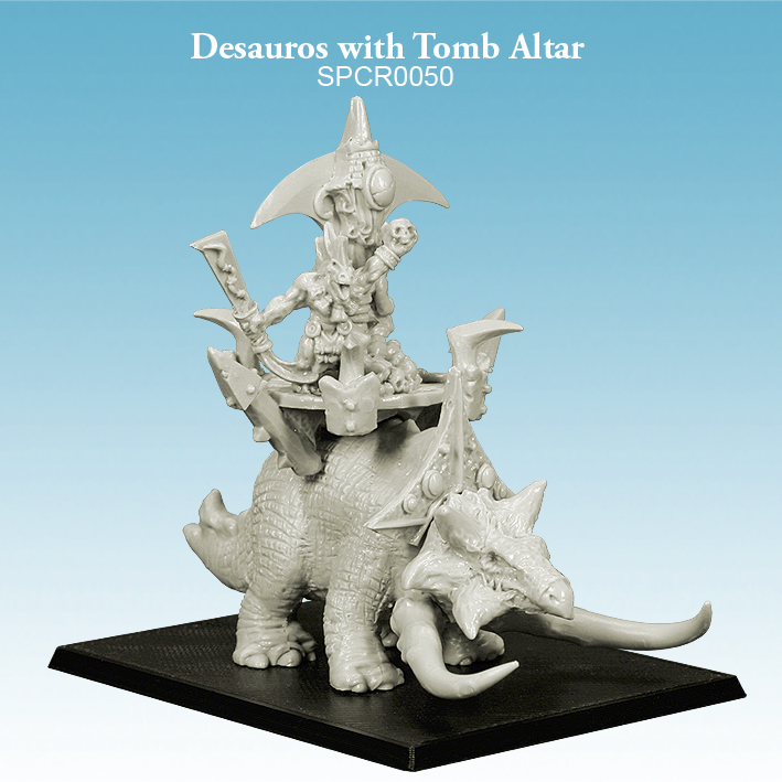 Desauros with Tomb Altar is a multi-part high-quality resin miniature which comes with a 60 mm x 40 mm rectangular base. Requires assembly, cleaning and painting. Scenic base not included. The miniature is dedicated for the Sorgax army in Argatoria Wargame.