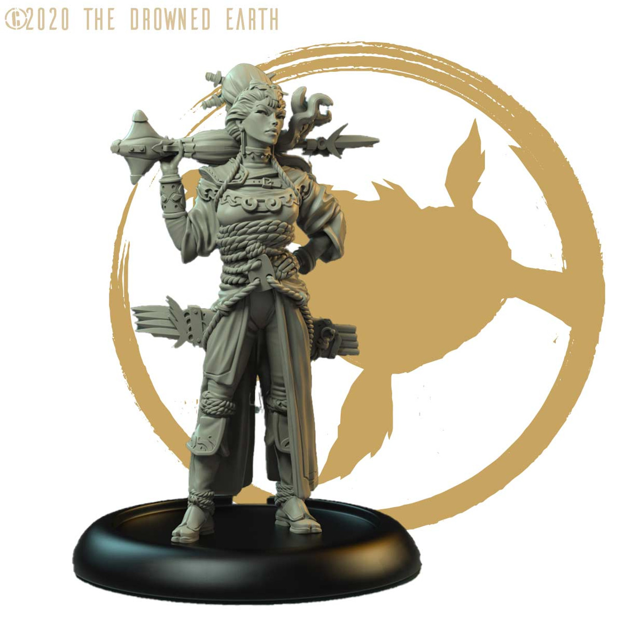 Dahu, Pirate Queen comprises one mounted version of Dahu and one version on foot, is a multi-part figure for use with the Corsairs faction in The Drowned Earth.