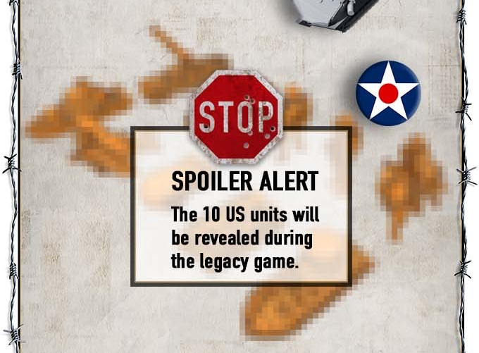 - Legacy game materials: 10 brand new secret miniatures, legacy board, faction sheet for USA, 3 secret envelopes with sticker sheets, instructions, etc., over 50 news cards, over 100 legacy cards, 10 modifier cards for diceless play, legacy rule book and mission sheet, other secret materials which will be revealed during the legacy game