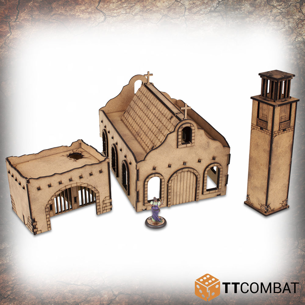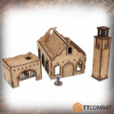 In this town, you can be tried in the chapel, held in the jail, and hung from the pillar… there’s no mercy in the west. Made from 3mm MDF and designed for 28-32mm tabletop wargames, this set is perfect for western themed games. The jail and chapel provide line-of-sight breaking chances and you can even repent in the chapel thanks to a removable roof.