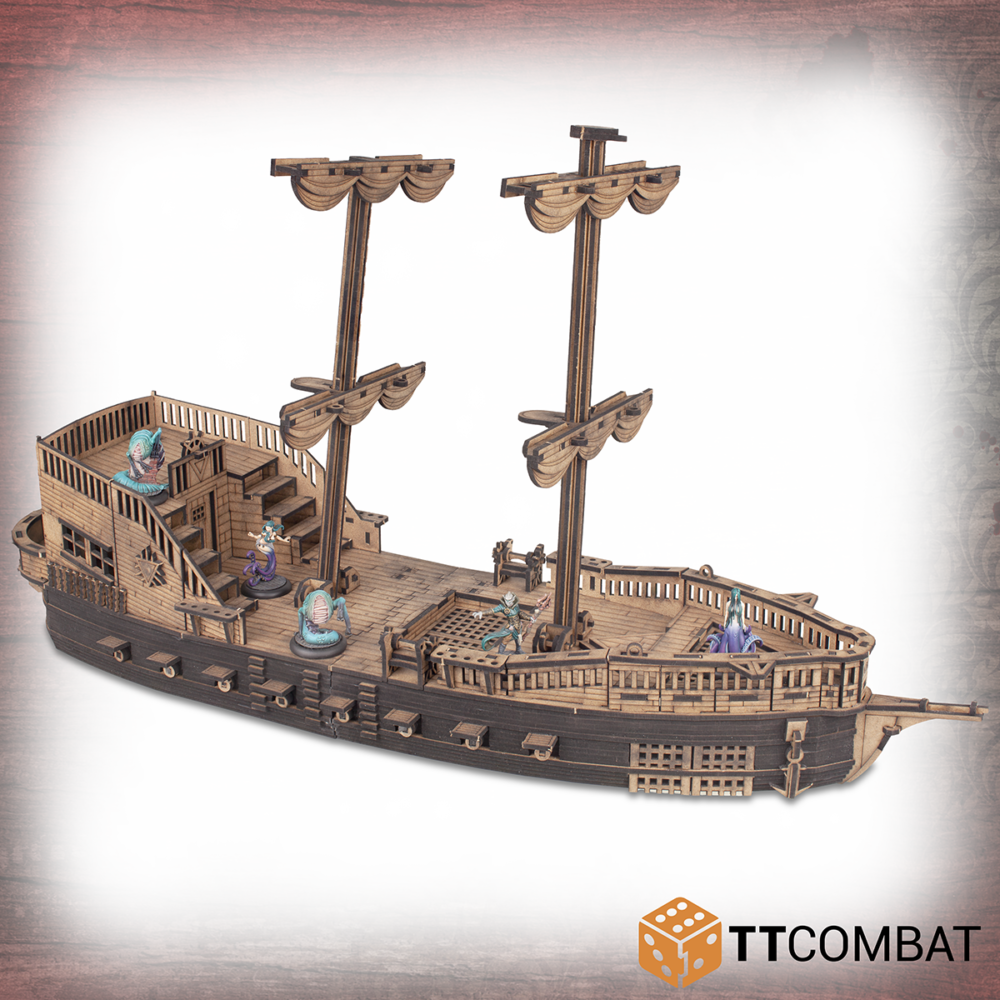 The Rashaar Frigate is made from 3mm MDF and is made for Carnevale and will work perfectly with other 28-32mm games.
