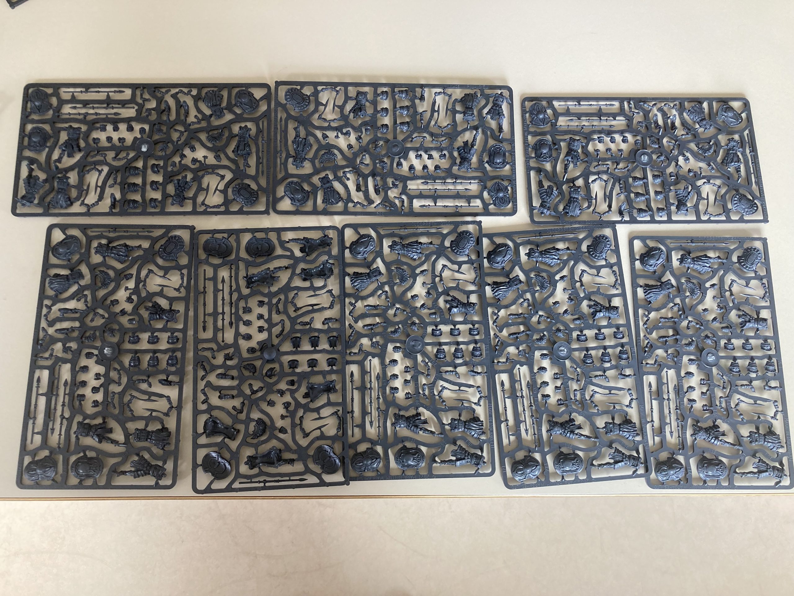 Schauen wir uns zunächst mal die Moroi bzw. die Kehres an. Der Gussrahmen ist wie schon erwähnt 8 Mal in der Box enthalten. Aus jedem Gussrahmen könnt ihr jeweils 3 Modelle bauen. Das heißt ihr kommt auf insgesamt 24 Modelle der Moroi oder der Kehres oder könnt 12 von jeder Variante bauen, was ich Einsteigern definitiv empfehlen würde, wenn man noch nicht weiß, was die Einheiten können und man etwas ausprobieren möchte. Von anderen Zusammenstellungen würde ich bei Last Argument of Kings abraten da die Einheiten immer in 12er Trupps gespielt werden.