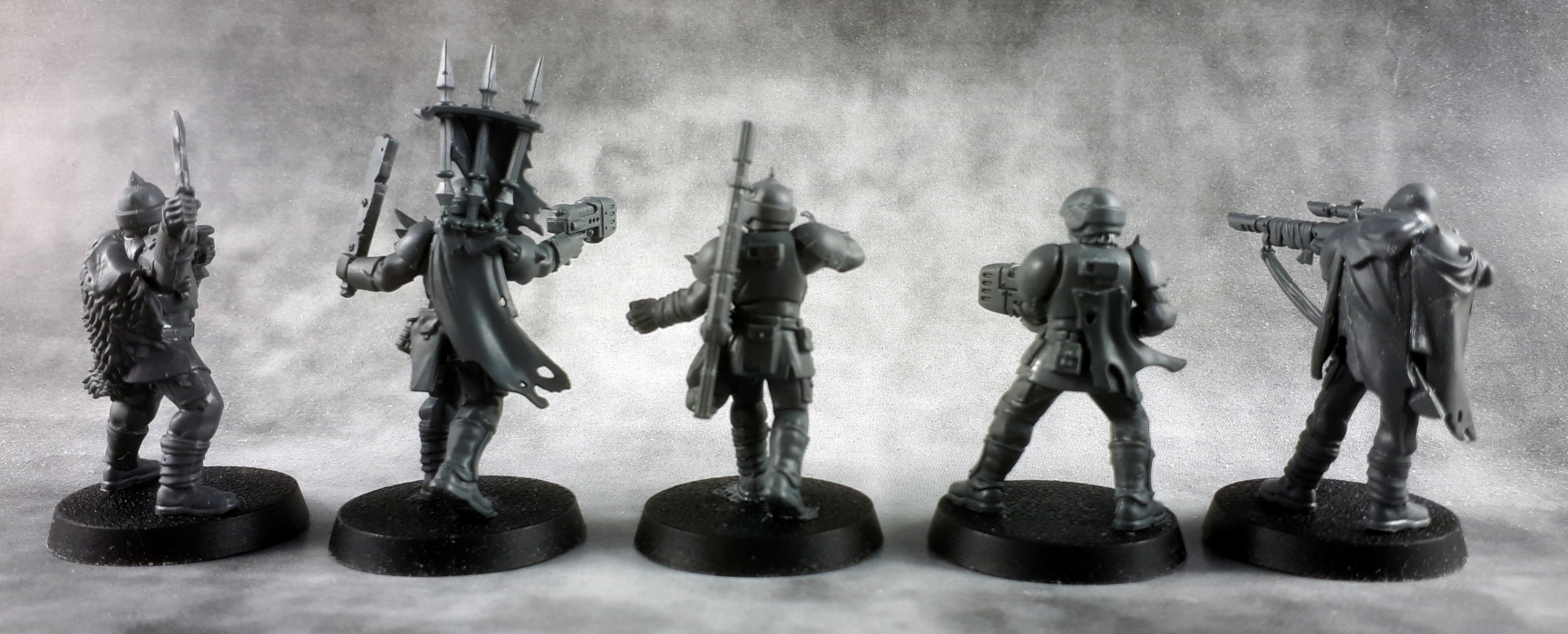 Ja, aber nicht gleichzeitig. Dazu hat man einfach zu wenige Figuren. Effektiv sind es 14 Mann, Ogryn und Kommissar zählen aber als 2. Nur so kriegt man mit der Box ein komplettes Team zusammen. Das war aber bei den Tau auch schon so. Zudem darf man nur 2 Gunner mitnehmen, man muss diese 2 aus Melter, Plasmawerfer, Flammenwerfer und Granatwerfer wählen. Ich habe oben auf Standardtrooper, Flammenwerfer, Granatwerfer und einen Nahkämpfer mit 2-Hand-Waffe verzichtet.