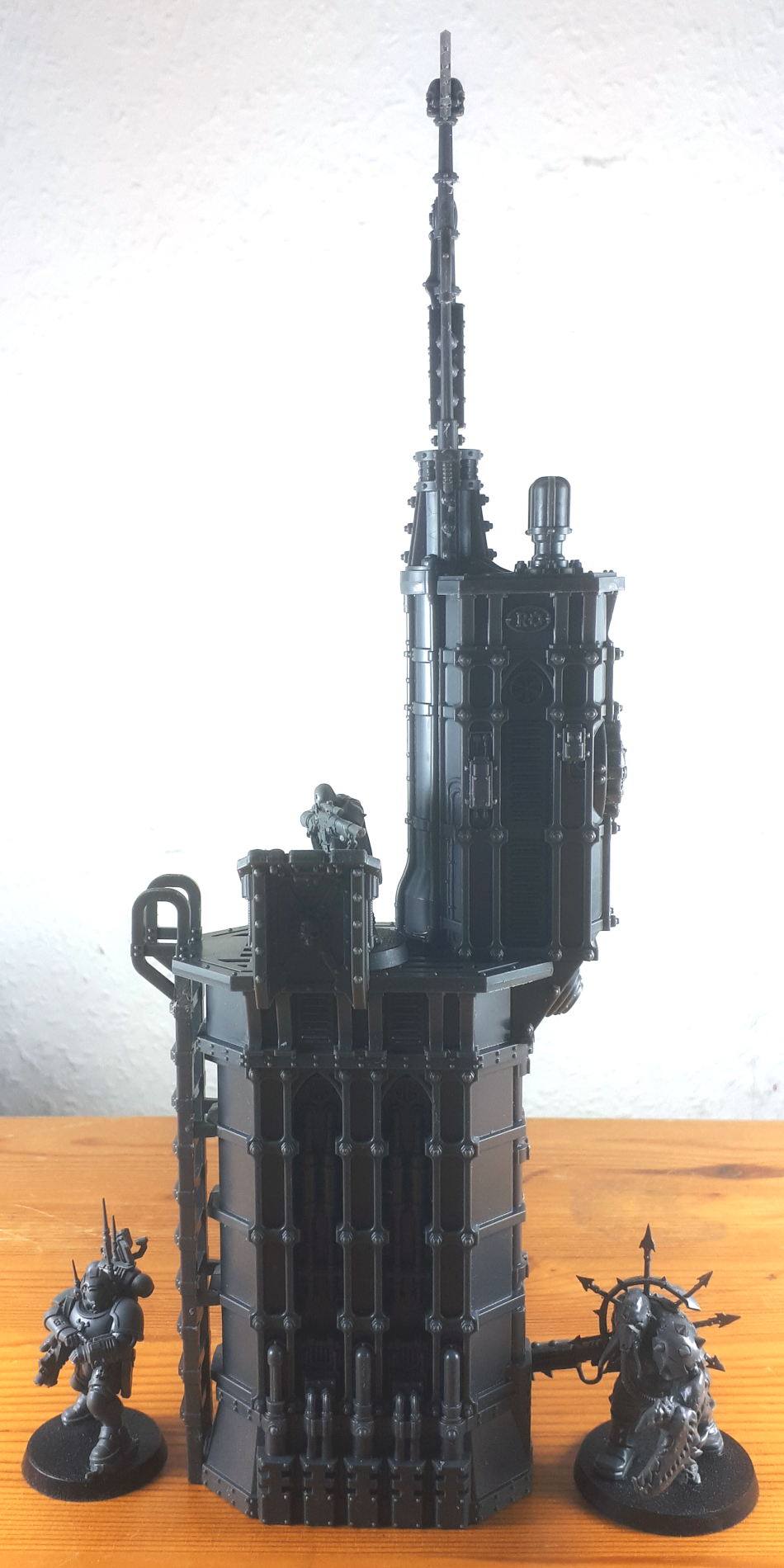 Würde man noch Grundregeln, Würfel und Schablonen dazu packen wäre man sofort spielbereit. Jeder Spieler erhält ein komplettes Kill Team. Etwas Schade dabei ist, dass das Phobos-Kill-Team theoretisch noch Reiver aufstellen könnte, aber keine entsprechenden Modelle enthalten sind. Die Zusatzbitz ermöglichen es die Marines zu individualisieren und so lässt sich jeder Spezialist eindeutig zuordnen. Die Vernarbten stellen gut eine zum Chaos übergelaufene Gruppe der Imperialen Armee dar, deren Ursprung man immer noch ohne weiteres erkennen kann. Ein paar „spickey bits“ hier, eine mit einem darüber getackterten Stück Metall notdürftig ausgebesserte Rüstung dort. Es sind eben Überläufer, die nicht sofort an der nächsten Ausgabe für Chaosanbeterrüstungen vorbei kamen. Auch Mutationen finden sich wenig bis gar keine. Das Gelände ist zwar für sich genommen toll und sieht super aus, aber in einem Spiel wie Kill Team erwartet man eher einiges an Schutthaufen und kleineren Barrikaden und weniger den Bunkeransturm über 300 Meter offenes Gelände. Natürlich bringt das Regelbuch einige passende Szenarien für das enthaltene Gelände mit. Der aktuelle Preis ist gegenüber den bisherigen Boxen erneut ein wenig gestiegen, gegenüber dem Einzelkauf findet sich hier aber auch wieder eine kleine Ersparnis.