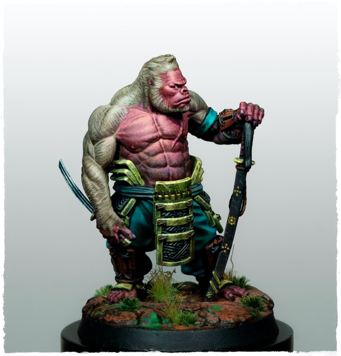 Meiyo, the gorilla Kenjutsu Master, was an elite soldier who supported the Japanese Army’s special forces in the period before the cataclysm. He currently helps the group of farmers with whom he lives with their sowing and harvesting. He is only willing to fight if he considers it necessary to help the innocent.