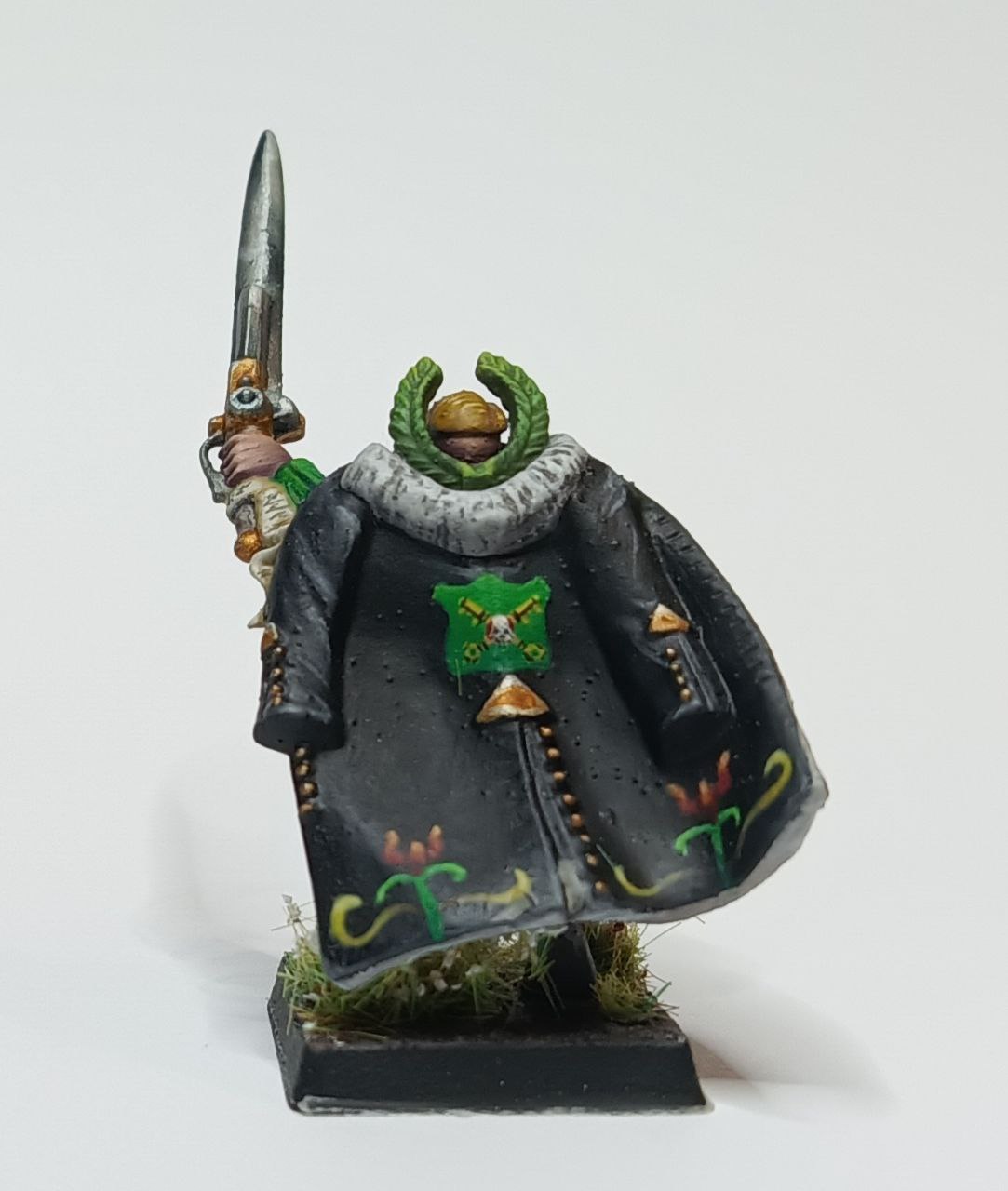 Ein gekitbashter Hauptmann für meine Hochland Armee. Denn er war ein Startpunkt für die Armee, nicht nur als Farbschema Tester, sondern auch als erster Testlauf für Freehands.