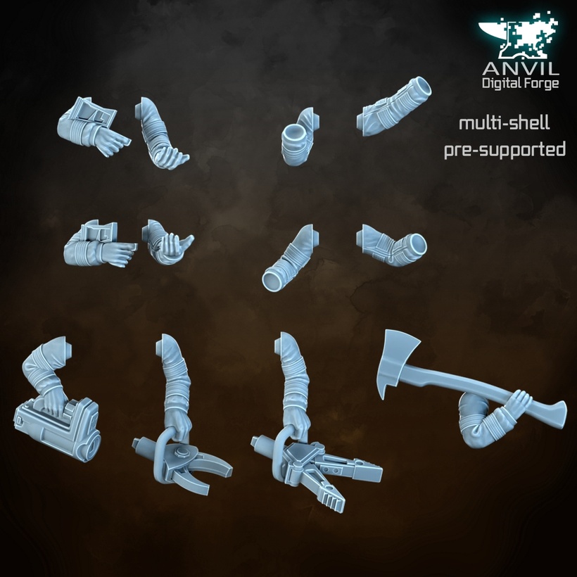 The Firefighers have got some great and iconic options for their arm sets, including two different configurations of the Jaws of Life, as either the spreader or cutting shears, fire axes in two dynamic poses, open wrist jointed arms, for use with any Regiments hand-held accessory or weapons options! We also couldn’t resist adding in a couple of Pistol-Grip joint rifle arms!