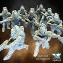 April is Gothic Tech Horror.. a familiar concept but our very own terrifying original take.. These monstrous shock infantry are muscular, hunched brutes, but are still fully compatible with our male regiments sets and Rifle Stock weapons from prior months.