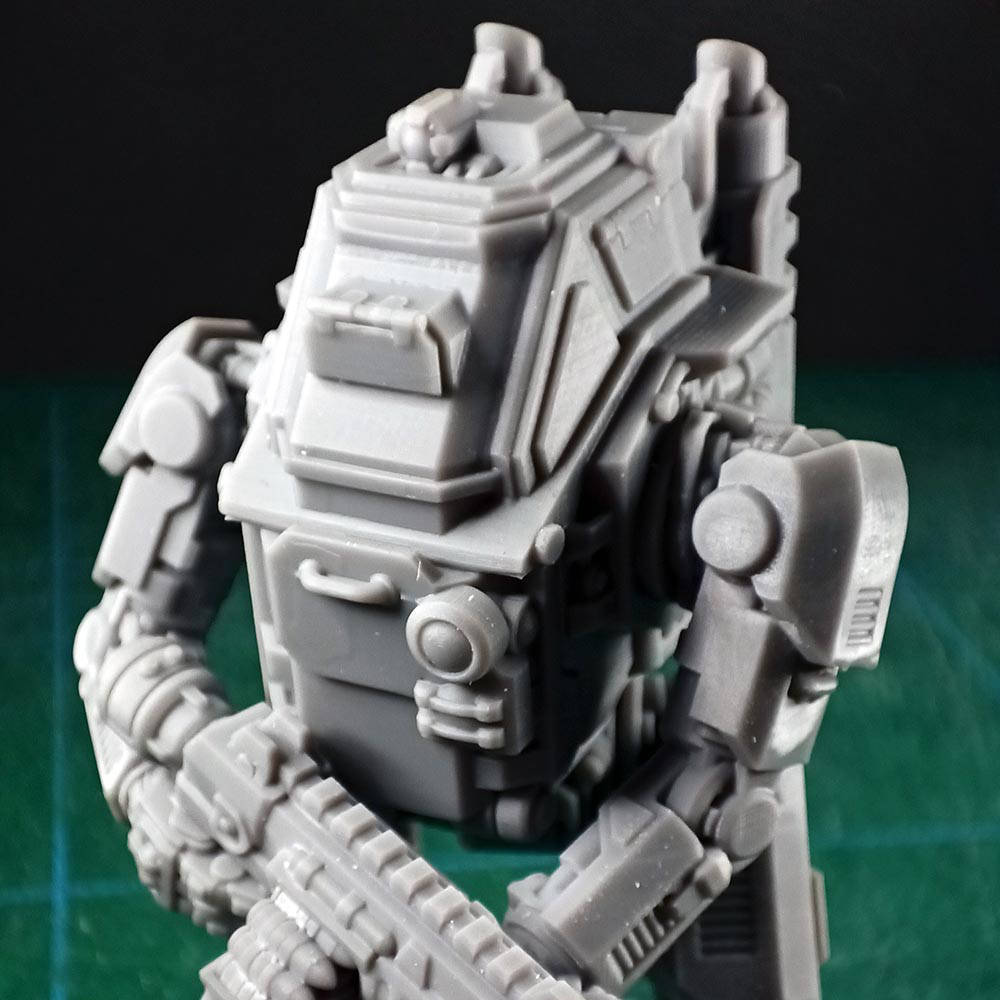 This is a pre-order for a 3D-printed Light Assault Mech! Approx 85mm tall. We are doing a limited trial print run on our in-house 3d printer.