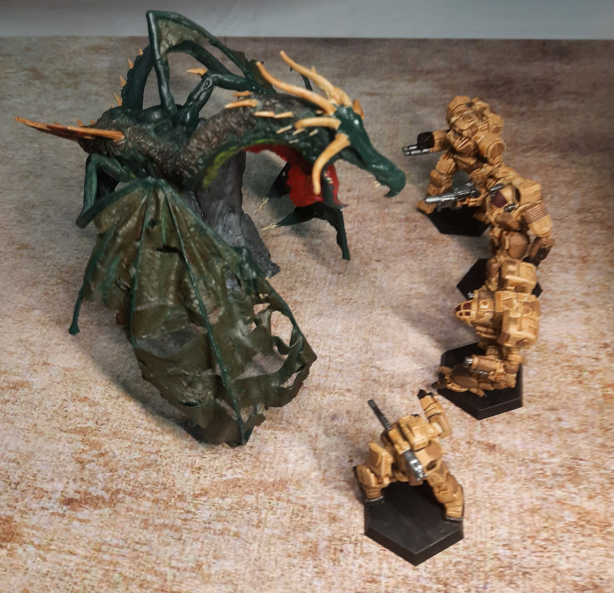 • Bei Bohne wird halt einfach gleich Mal ne ganze Story erzählt. Ob die beiden Droiden jetzt als Mechs durchgehen ist ne andere Frage und der Drache ist auch bissel reingeschummelt 😅.