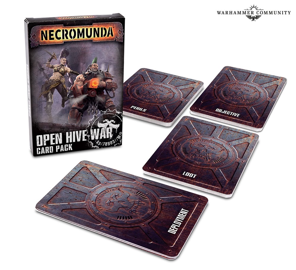 Generate endless gangland skirmishes amid the industrial grime of Necromunda with the Open Hive War Card Pack. This 50-card pack generates deployments and objectives alongside loot and perils which creates unique missions for your gangs to fight over. You’ll need to stay adaptable and have a tool for every situation to triumph in this unpredictable format.