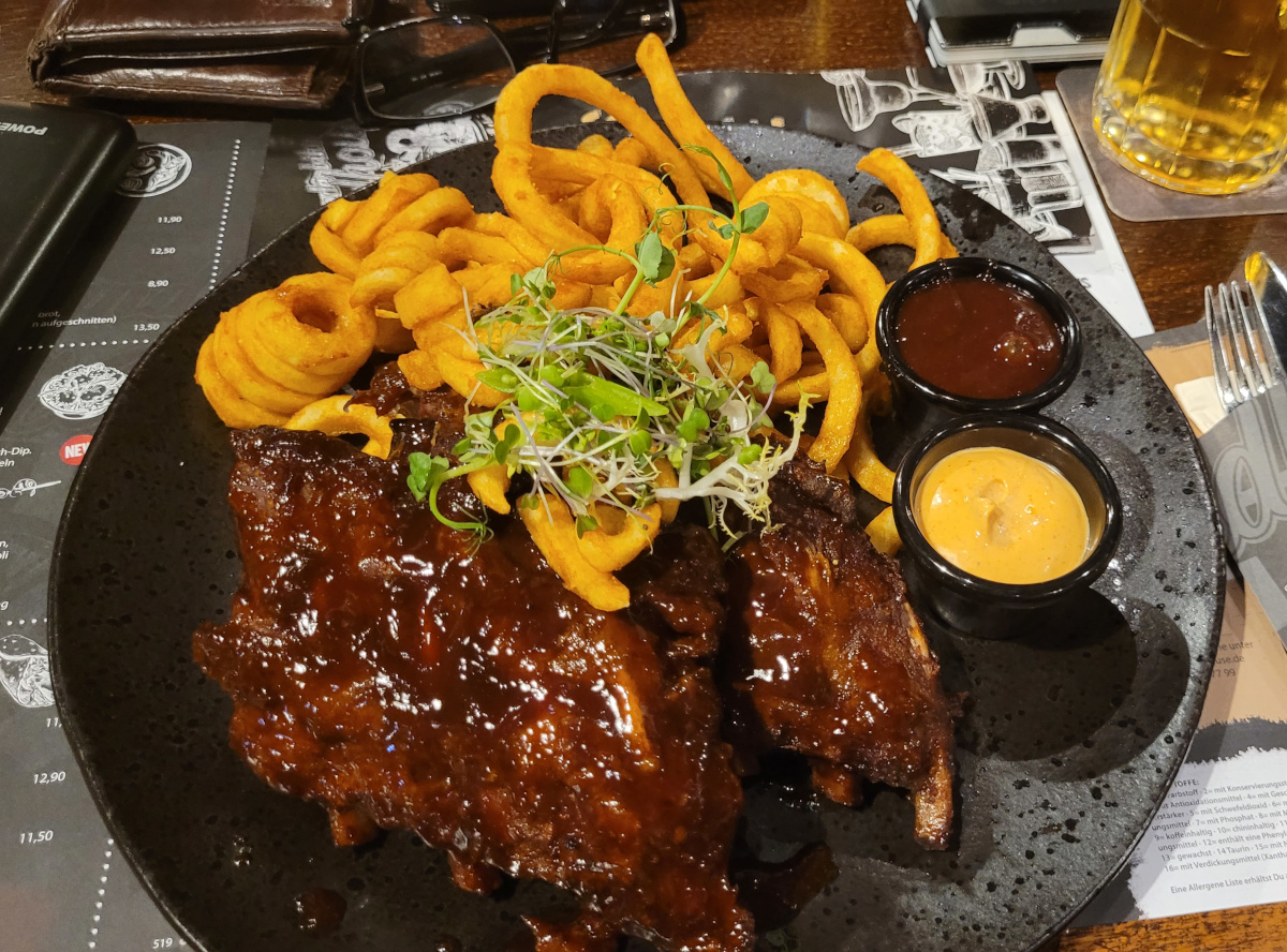 Nach Tag 1 ging es dann zu einem sehr wohlverdienten Abendessen, und während ich mich zuhause inzwischen mehrheitlich vegetarisch ernähre, musste ich bei der Aussicht auf Spare Ribs einfach zuschlagen – und ich habe es nicht bereut!