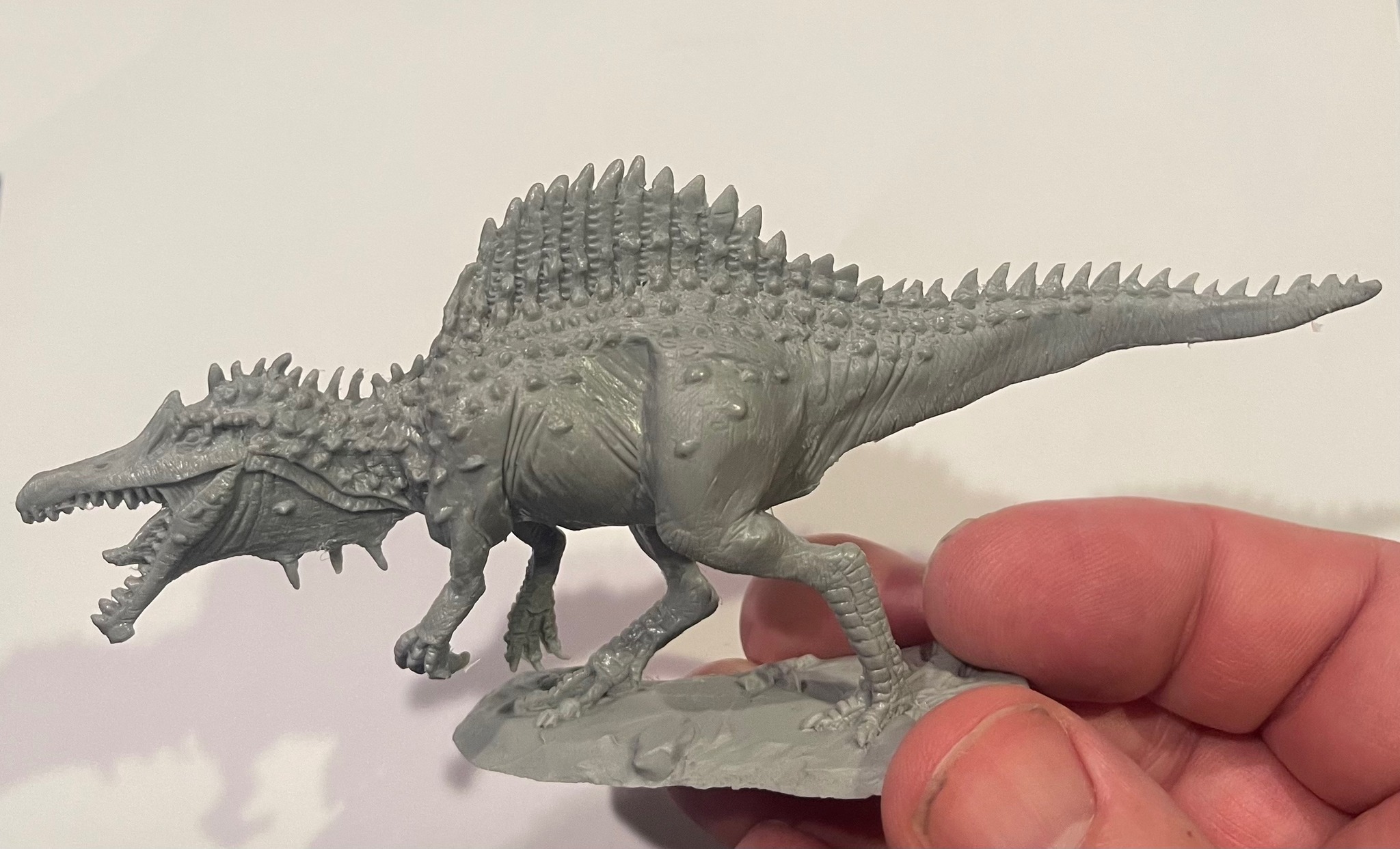 When they brought dinosaurs back using “advanced scientific methods,” this included the Spinosaurus, but for stability of its gene sequence they had to mutate it with Giganotosaurus, leading to what the scientists called “Spinotyrannus novus.” Spinotyrannus was the most dreaded of the neosaurs. Should be available soon from Khurasan Miniatures. This colossal terror is 15mm!