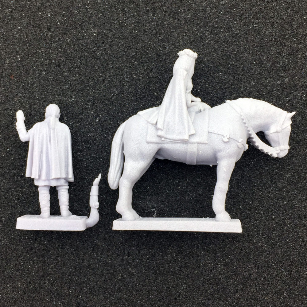 Only 100 of these figures are produced. This is the 195th release in the Gold Status Fellowship club. This was the winning idea from April 2022 and was submitted by Fellowship member „Luthien Tinuviel„. This is the seventh fully resin figure, undercoated with matt grey primer. It is created in three pieces (the grooms arm is separate). The base has the manufacturer name, MITHRIL, date and number on the sides of the base. The mounted figure measures 50mm in length, and is about 50mm in height. The groom is 35mm in height from bottom of base to top of his head.