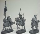Bauvariationen kommen dann wieder mit den Freigilden-Rittern. Sie sind auf drei Gussrahmen verteilt. Was wir bisher nicht bei einer Kavallerie gesehen haben, ist die Weise wie die Pferde gebaut werden. So gibt es 5 untere Hälften und 5 obere Hälften. Diese sind untereinander wild mischbar, anstatt der klassischen linken und rechten Hälfte. Weiterhin interessant sind die Köpfe. Denn dort sind die behelmten Köpfe mehr als einen Blick wert. Denn die Visiere sind separat und frei positionierbar. Somit kann man zwischen geschlossenen und geöffneten Visieren arbeiten. Bei den Kommandooptionen gibt es keine Möglichkeit für einen Musiker. Es gibt also nur die Option einen Champion und einen Bannerträger zu bauen.